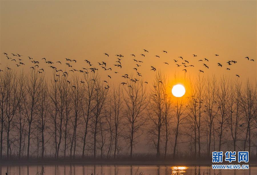 12月14日,一群白鹭在江苏省淮安市盱眙县淮河水域上空飞翔。 新华社发(周海军 摄)