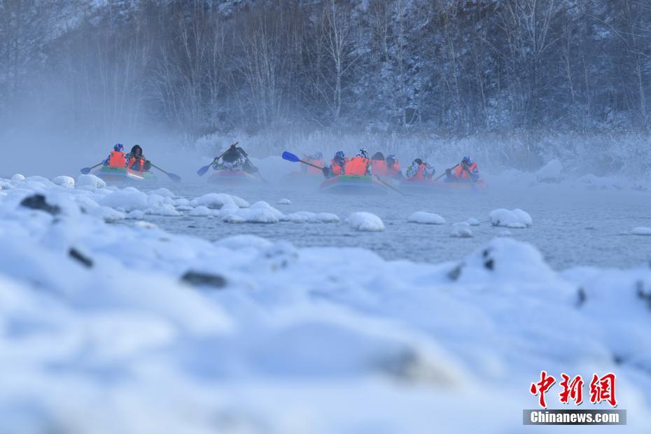 12月13日,人们在“不冻河”激情漂游。据悉,“不冻河”位于内蒙古自治区兴安盟阿尔山市境内,是距市区74公里处的哈拉哈河的一段河流,该处河段在严冬时节也从不封冻,故被人们称为“不冻河”。“不冻河”河段全长20公里,不冻现象的产生,是由于该河段附近有大量地热的存在。中新社发 钟欣 摄