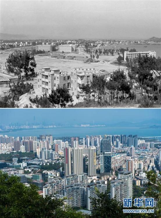 拼版照片:上图为深圳蛇口工业区一瞥(资料照片,新华社记者 李长永 摄);下图为广东自贸区深圳前海蛇口片区内的蛇口片区(新华社记者 毛思倩 2015年2月26日摄)。 图片来源:新华网