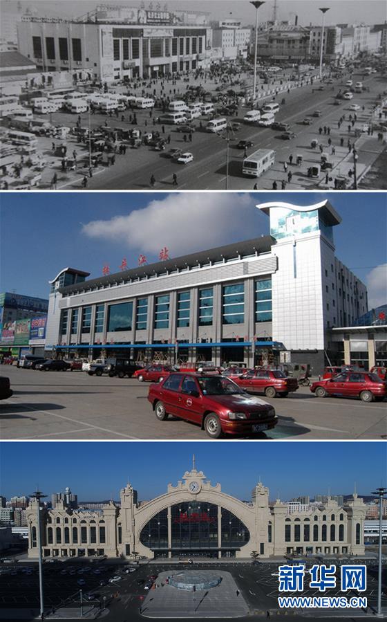 这是一张拼版照片,上图:上世纪90年代初的牡丹江站外景;中图:2002年2月15日拍摄的牡丹江站外景;下图:2018年12月10日拍摄的牡丹江站外景。 董治国,1978年3月生于黑龙江省牡丹江市。由于他的外公和父亲都是铁路人,董治国很小就萌生了当一名火车司机的梦想。1994年7月,初中毕业的董治国直接考入齐齐哈尔铁路司机学校,三年后进入牡丹江机务段,开始了火车司机生涯。董治国从90年代亲自驾驶内燃机车,到如今采访报道哈牡高铁的建设历程,跟随牡丹江铁路一起走进了高铁时代。 董治国说:“我在铁路上工作了20多年,见证了铁路的发展和巨大变化,我很幸运,也很自豪!” 新华社发(张春祥摄)