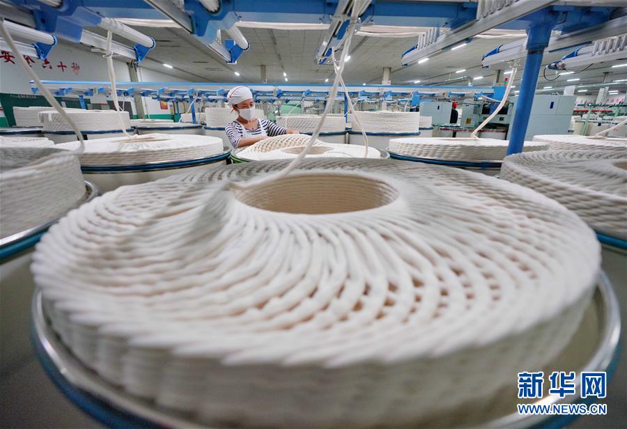 12月18日,河北省滦南县一家纺织企业的工人在生产车间工作。 近年来,河北省滦南县加快新旧动能转换,通过发展新技术、新产业、新业态、新模式,改造钢铁、装备制造等传统产业,培育壮大新兴产业,实现产业转型升级。据介绍,2018年1至11月,该县实现工业产值253.2亿元,同比增长27.1%,实现工业增加值65.56亿元,同比增长10.1%。 新华社记者杨世尧摄