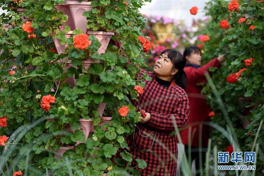 12月18日,在南和县贾宋镇一家现代农业示范园区,工人在管理花卉。 新华社记者 朱旭东 摄