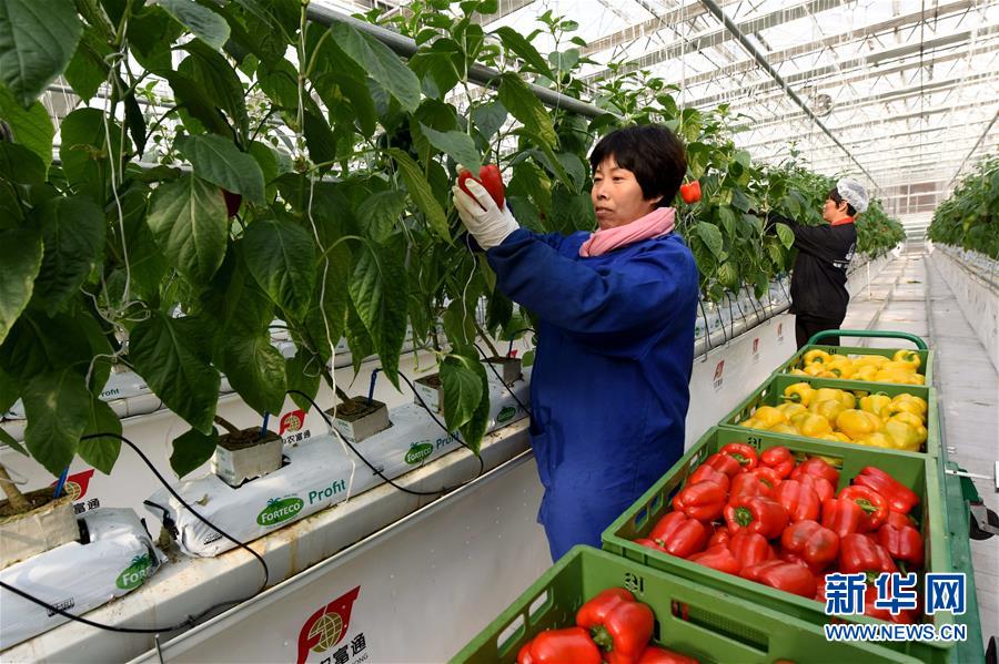 12月18日,在南和县贾宋镇一家现代农业示范园区,工人在采摘彩椒。 新华社记者 朱旭东 摄