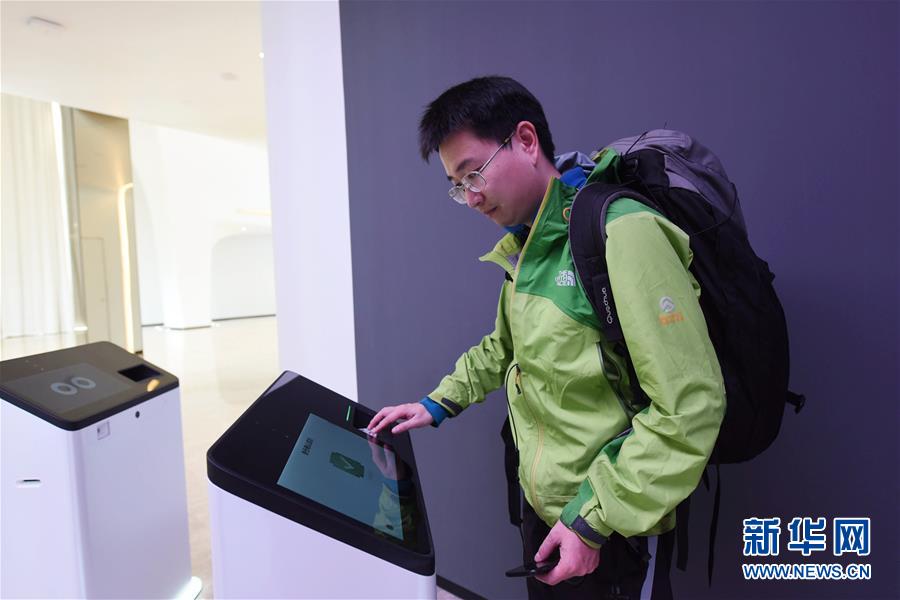 12月18日,顾客在“未来酒店”通过刷身份证和人脸识别技术自助办理入住手续。 新华社发(龙巍 摄)