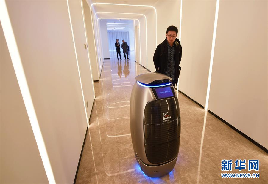 12月18日,智能送餐机器人前往餐厅为顾客服务。 新华社发(龙巍 摄)