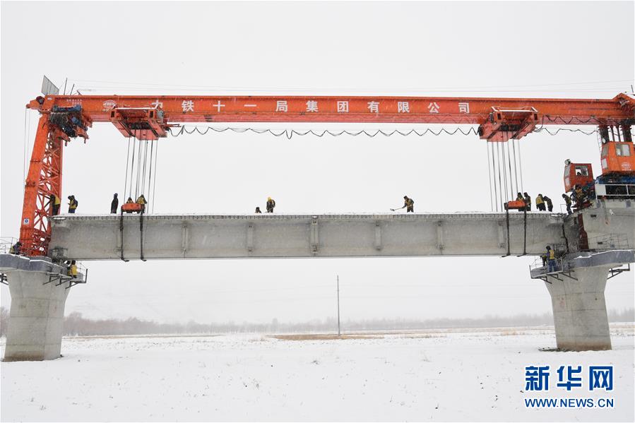 12月18日,中铁十一局的工人在贡嘎雅鲁藏布江特大桥建设工地施工。 新华社发(王荃荃 摄)