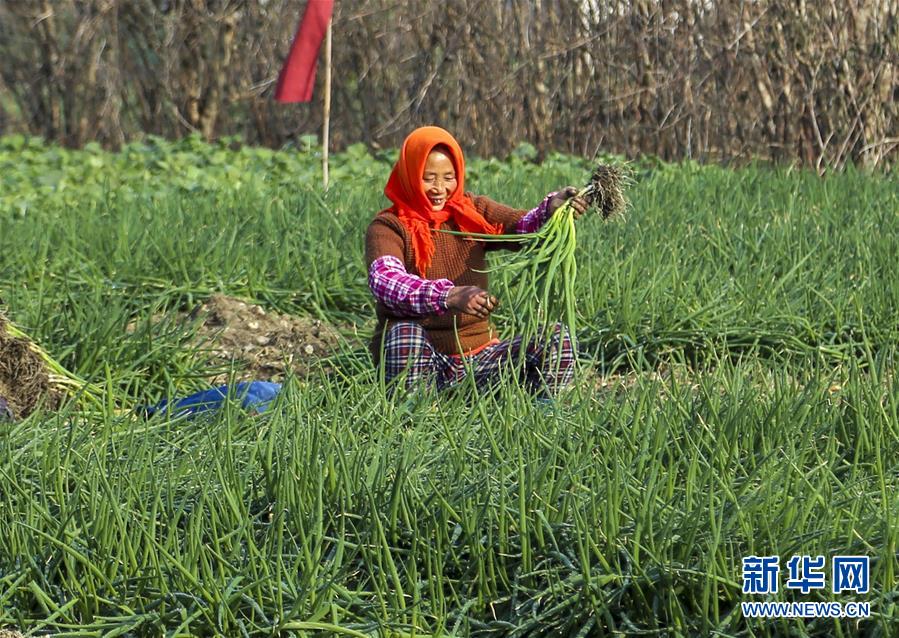 12月18日,在位于兴化市征北村的种植基地,农民在收获香葱。 兴化香葱的主产区是江苏省兴化市垛田镇。近年来,兴化市着力推进香葱规模化种植,并发展香葱深加工产业,经过加工的脱水香葱每年出口数千吨,有效带动当地农民增收致富。 新华社发(汤德宏 摄)