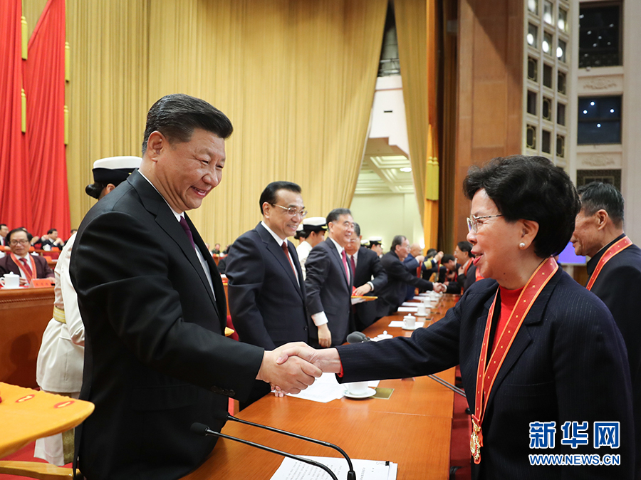 12月18日,庆祝改革开放40周年大会在北京人民大会堂隆重举行。中共中央总书记、国家主席、中央军委主席习近平在大会上发表重要讲话。这是习近平等为获得改革先锋称号人员代表颁奖。 新华社记者 鞠鹏 摄