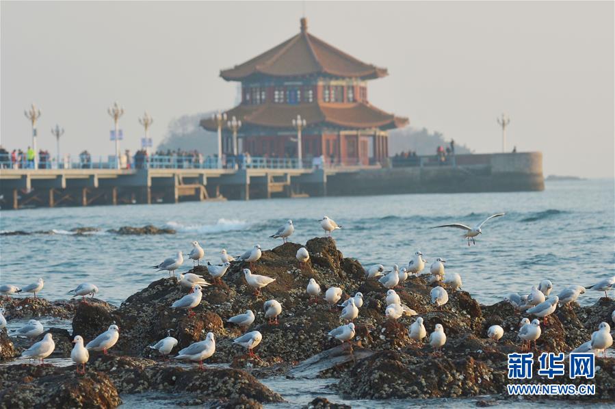 12月18日,红嘴鸥在青岛栈桥景区栖息。 新华社发(王海滨 摄)