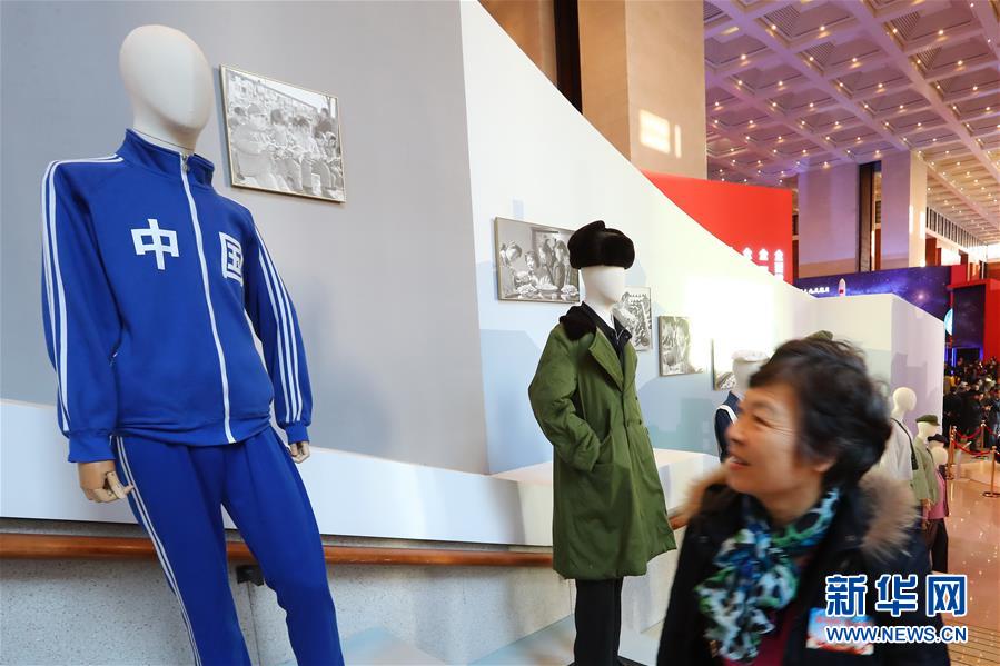 12月18日,参观者在展览上参观服装展台。 截至当日,在中国国家博物馆举行的“伟大的变革——庆祝改革开放40周年大型展览”累计参观人数突破160万人次。 新华社记者 张玉薇 摄