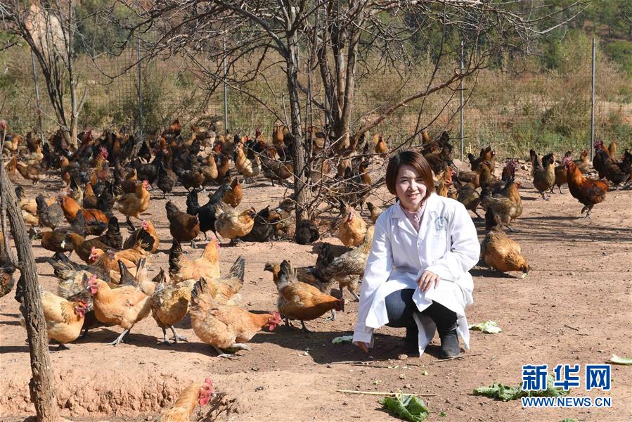 12月17日,马关琴在自己的土鸡放养基地。“茶花仙子”马关琴以饲养茶花土鸡而得名。10年前,从昆明市毕业的马关琴没有选择留在城市工作,带着自己所学的兽医专业知识回到大山深处的家乡创业养殖“茶花土鸡”。2015年,马关琴成立养殖专业合作社,义务为群众培训养殖技术。2017年10月,拖布卡镇“茶花土鸡”扶贫基地成立,年出栏土鸡10余万只,带动建档立卡贫困户1000余户脱贫增收。 新华社记者 杨宗友 摄