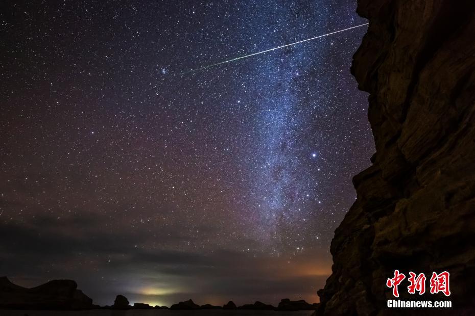青海雅丹魔鬼城上演“流星与金星”