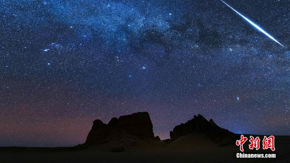 在雅丹魔鬼城上空的火流星和46p彗星。安久 摄