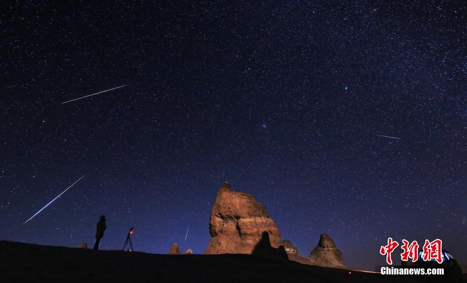 青海俄博梁拍摄的《流星与金星》。白继开 摄