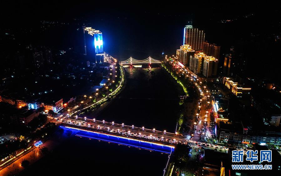 夜幕下的荔浦市中园桥一带(12月17日无人机拍摄)。 新华社记者张爱林摄