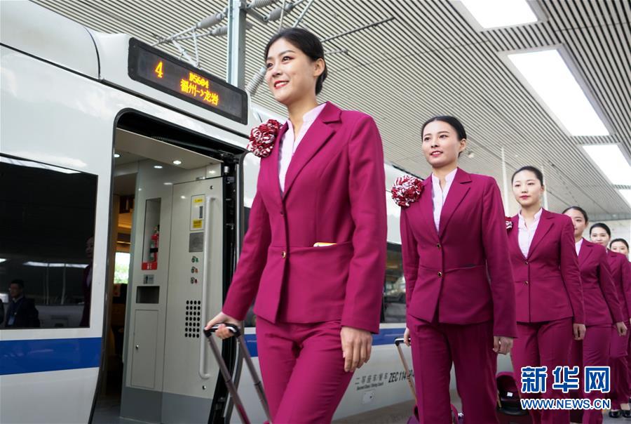 12月19日,乘务员准备登上福州至龙岩的试运行动车。 新华社记者 林善传 摄