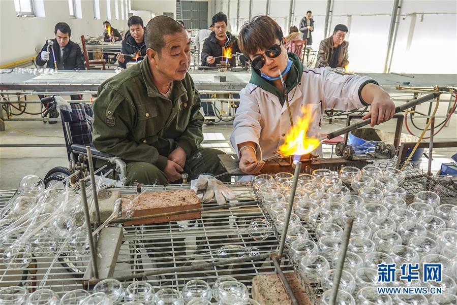 12月19日,大城县“阳光扶贫就业基地”技术人员在为贫困残疾人讲解茶具烧制工艺。 新华社记者李晓果摄