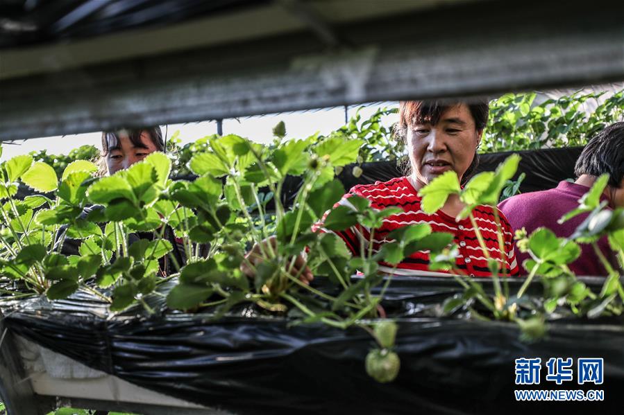 12月19日,农户在大棚里管理草莓。 2017年5月,辽宁省铁岭市昌图县大四家子镇方家船口村利用土地确权成果,由村两委班子成员领办创办了昌图久晟果木蔬菜种植专业合作社。到2018年9月,合作社利用产业扶贫资金、壮大村集体经济扶持资金、村集体用地和村民入股资金建成了11个“股份制大棚”,主要种植草莓等作物,产品通过电商销往云南、四川、北京、上海等地,预计第一期可为265名贫困户每人分红860元。 新华社记者潘昱龙摄