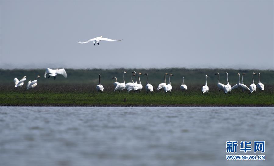 一群小天鹅在洞庭湖的一处湿地生境修复工程实验区内飞翔(2月26日摄)。新华社记者 李尕 摄