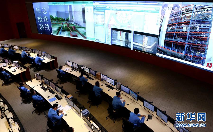 在中新天津生态城公用事业运行维护中心调度大厅,工作人员实时监控基础设施运行情况,进行城市信息化精细管理(12月19日摄)。 新华社记者 高静 摄