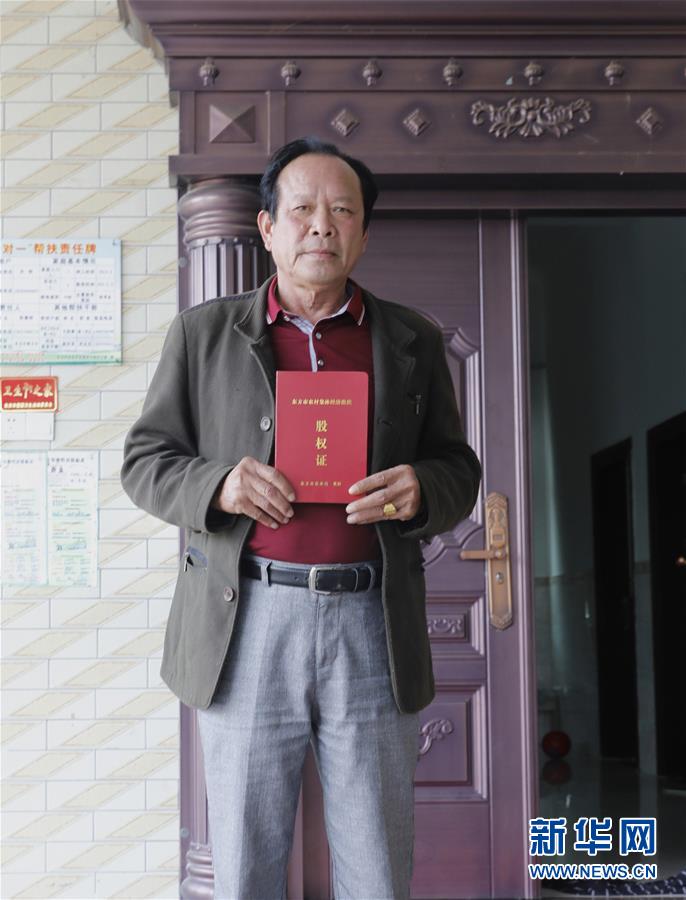 乐妹村村民符明展示领到的农村集体经济组织股权证(12月14日摄)。 新华社发(王军锋摄)