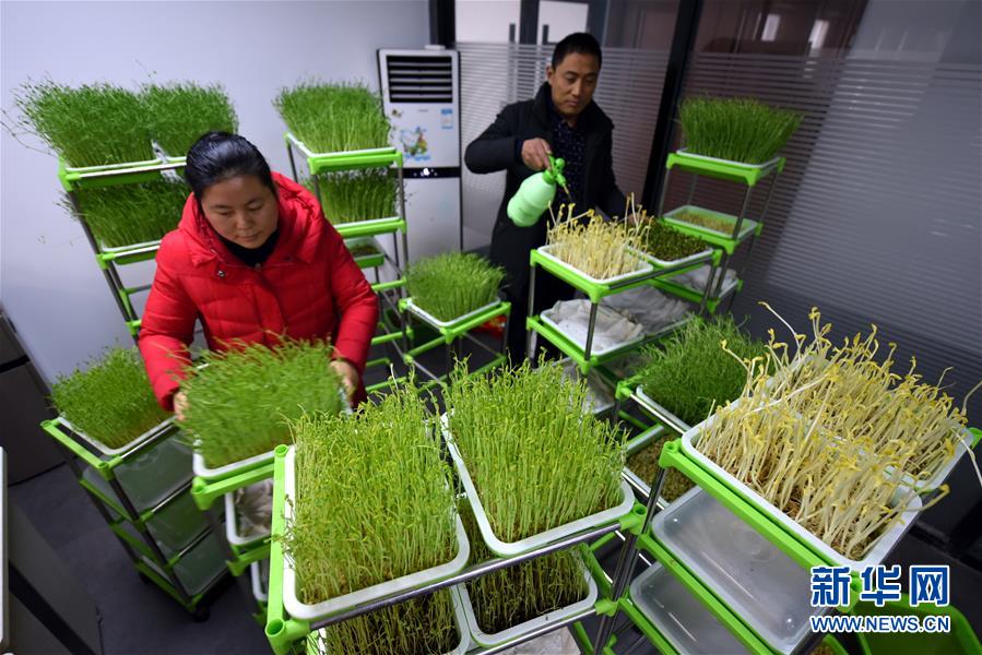 12月20日,在山东省临沂市郯城县红花镇青年创业园,工人在管理“芽苗菜”。 新华社发(房德华 摄)