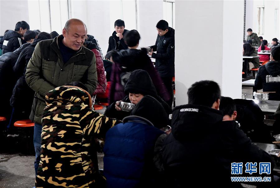 刘华在食堂照顾学生吃饭(12月12日摄)。 新华社记者李安摄