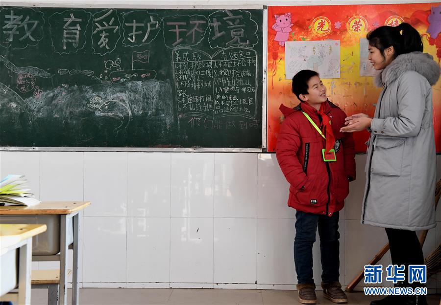 刘培在课后和学生谈心(12月13日摄)。 新华社记者李安摄