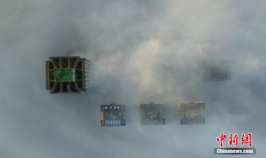 航拍雾海中扬州,宛如空中之城。孟德龙 摄