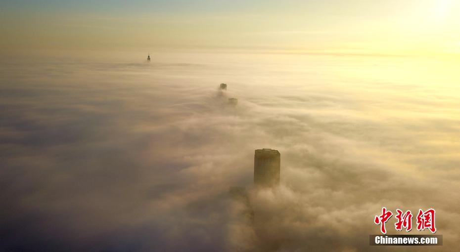 古城扬州笼罩在升腾的云雾之中。孟德龙 摄