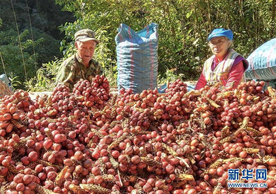 独龙江乡马库村村民在整理收获的草果,准备卖到外地市场(2018年11月10日摄)。 新华社发(杨时平 摄)
