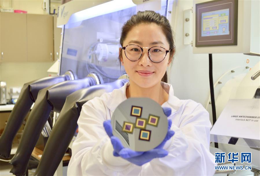 12月21日,在澳大利亚堪培拉,参与研究的澳大利亚国立大学申何萍博士在实验室展示新型电池。 新华社发(杨赟摄)