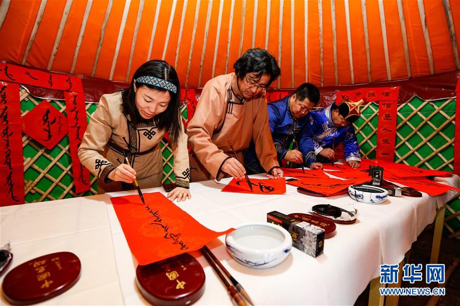 12月21日,书法家在活动现场写春联。 新华社记者 虞东升 摄