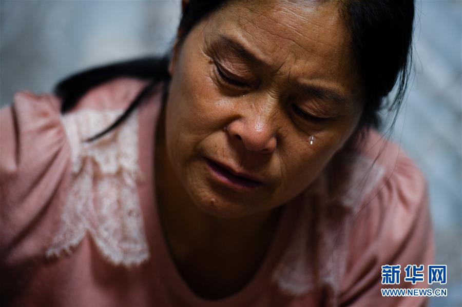 在江苏省灌云县燕尾港镇,王仕花回忆她和王继才的守岛往事时潸然泪下(8月7日摄)。 新华社记者李响摄