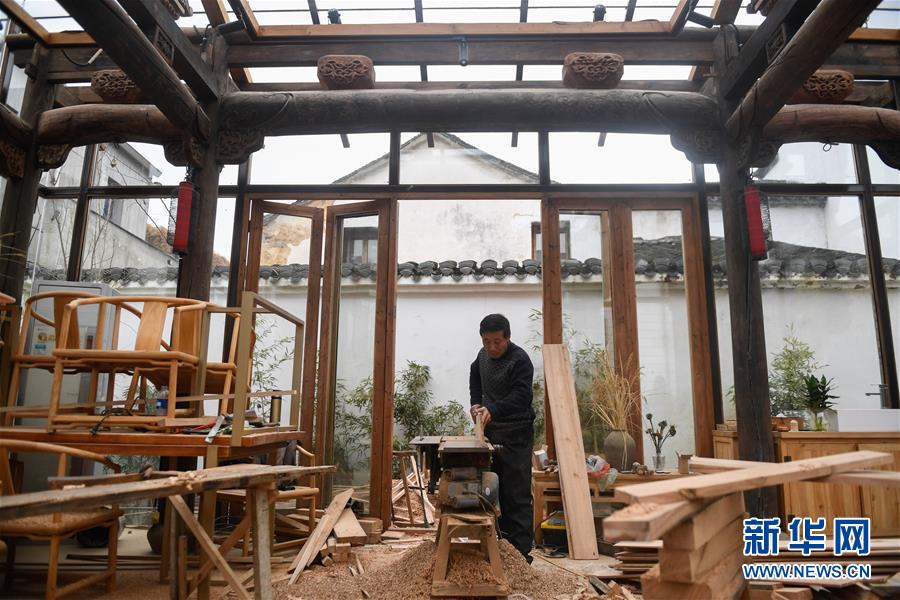 12月21日,工人在桐庐县江南镇深澳村修缮改造一间古宅。深澳村有保存完整的古建筑群落,常年吸引大批游客参观。 新华社记者 黄宗治 摄