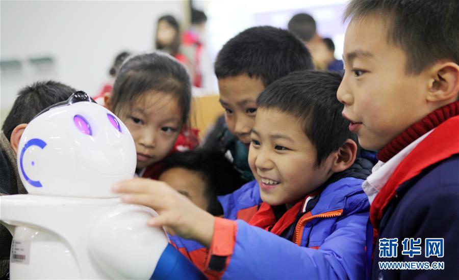 12月21日,小学生们了解机器人知识。 新华社发(陈仕川 摄)
