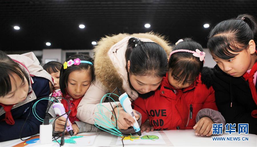 12月21日,小学生们体验3D打印笔。 新华社发(陈仕川 摄)