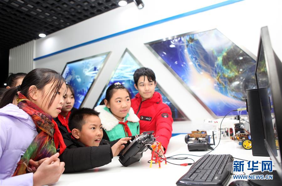 12月21日,小学生们参与模拟飞行体验。 新华社发(陈仕川 摄)