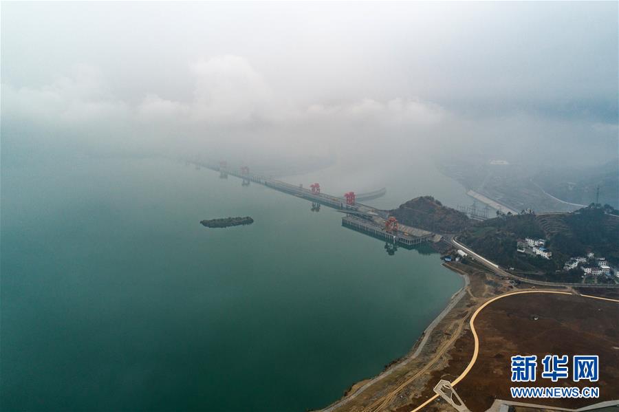 这是12月21日在湖北省秭归县拍摄的三峡大坝(无人机拍摄)。 新华社发(王罡 摄)