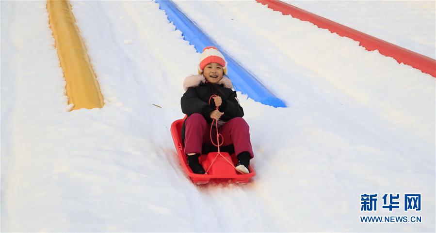 12月21日,一名小朋友在龙潭冰雪节现场游玩。 新华社发(刘宪国 摄)