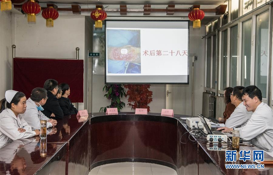 12月21日,北京宣武中医医院专家和阜平县中医医院大夫在交流。 新华社发(刘玉和 摄)