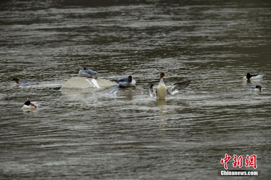12月21日,江西省靖安县森林公安局民警在巡查野生动物栖息地时,拍摄到国家一级保护野生动物中华秋沙鸭在该县南潦河中觅食栖息,数量达20多只。中华秋沙鸭成对或以家庭为群,以捕食鱼类为主,常成3-5只小群活动。中华秋沙鸭是第三纪冰川期残存下来的物种,距今已有一千多万年,是中国特有的珍稀鸟类,有鸟类“活化石”“鸟中大熊猫”之称。胡华山 摄