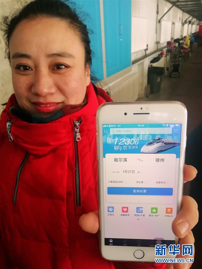 12月23日,哈尔滨市民李晓颖通过手机查询春运第一天的火车票。 12月23日,2019年春运火车票开始互联网和电话订票。2019年铁路春运从1月21日起至3月1日止,共40天。 新华社记者 曹霁阳 摄