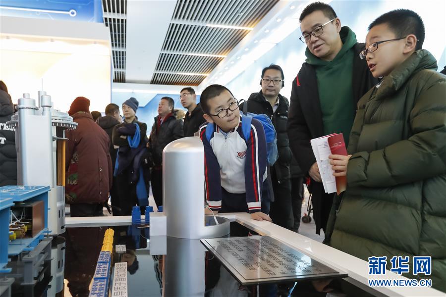 12月23日,观众在“伟大的变革——庆祝改革开放40周年大型展览”的大国气象展区参观。 截至当日,在中国国家博物馆举行的“伟大的变革——庆祝改革开放40周年大型展览”累计参观人数突破190万人次。 新华社记者 沈伯韩 摄