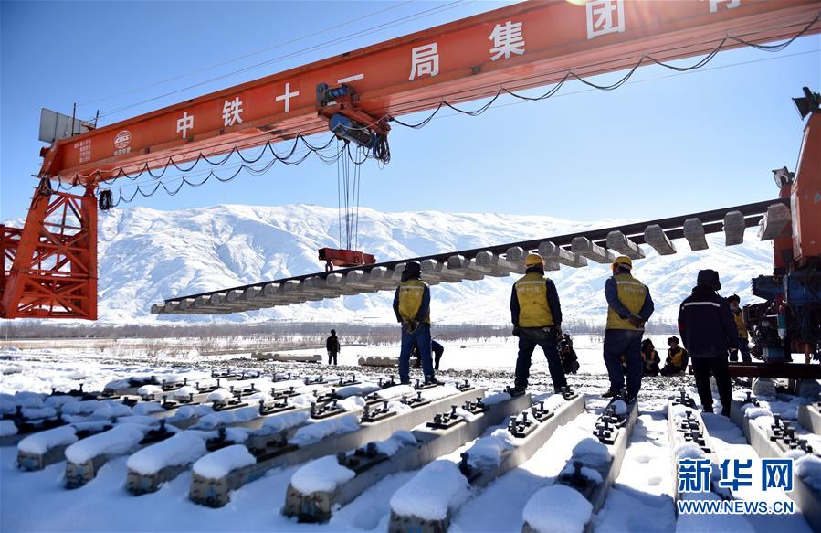 12月23日,工人在川藏铁路拉林段施工。 近日,拉萨周围大面积降雪,川藏铁路拉林段施工现场气温骤降。中铁十一局的建设者顶着严寒,在冰天雪地中持续施工。 新华社记者 觉果 摄