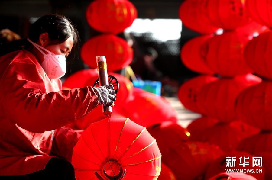在河北省石家庄市藁城区屯头村,一名工人在生产车间制作宫灯。新华社发 段然行之 摄 图片来源:新华网