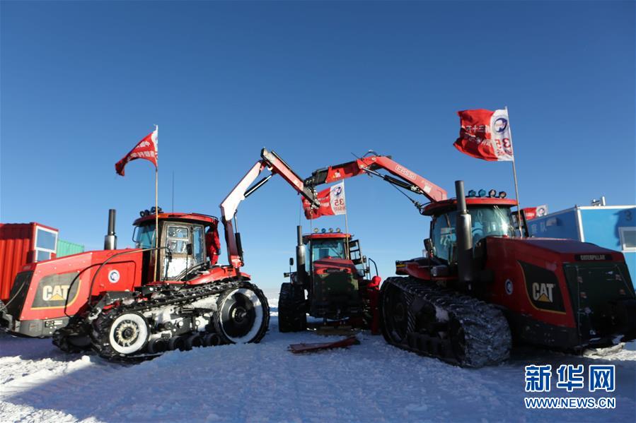 12月23日“凌晨”,中国第35次南极科考队内陆队机械师在修理卡特雪地车。 (配本社同题文字稿) 新华社记者 刘诗平 摄