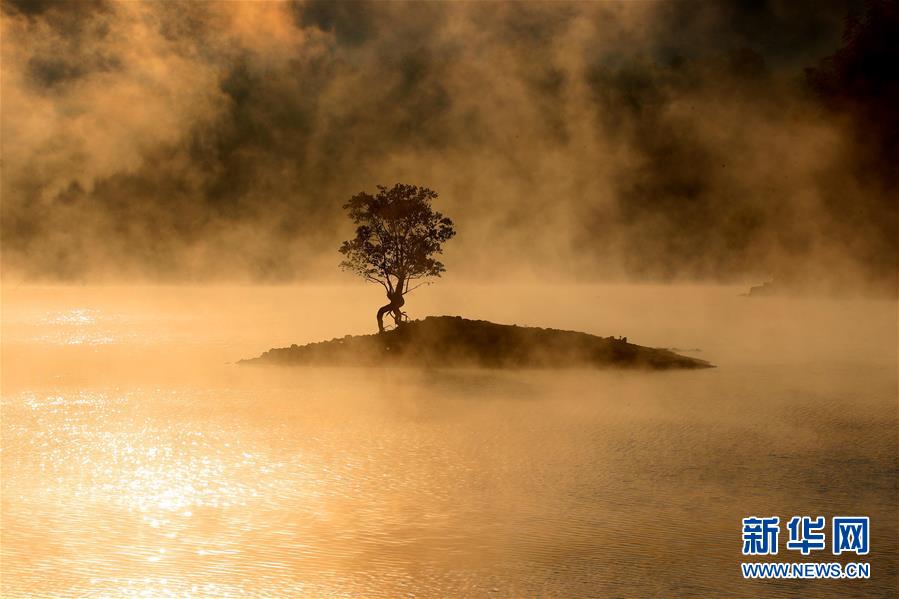 这是10月11日在安徽黄山拍摄的晨雾弥漫的奇墅湖秋色。 在即将过去的2018年,各地摄影师用镜头记录下四季中国。大江南北,一幅幅色彩斑斓的美丽画卷徐徐展开。 新华社发(施广德 摄)