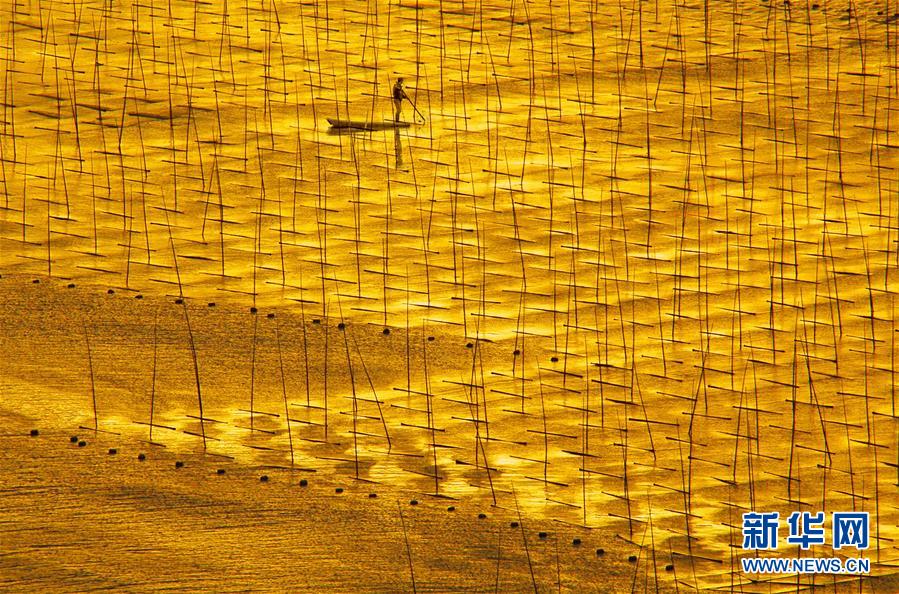 10月24日,在福建省霞浦县北岐滩涂紫菜养殖基地,渔民在维护紫菜护架。 在即将过去的2018年,各地摄影师用镜头记录下四季中国。大江南北,一幅幅色彩斑斓的美丽画卷徐徐展开。 新华社发(潘正光摄)
