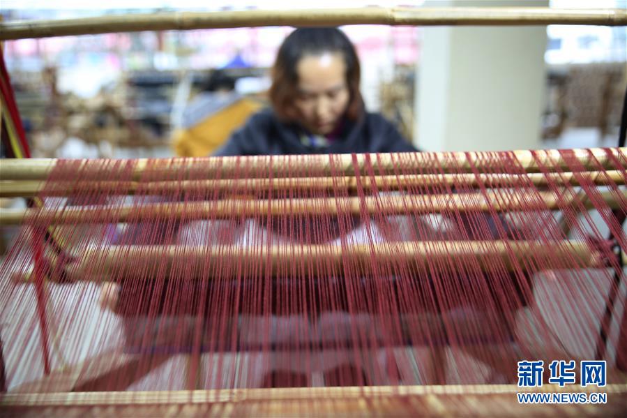 12月24日,在湖南省张家界市武陵源区乖幺妹土家族织锦基地,工人在制作织锦产品。新年临近,张家界市武陵源区土家族织锦企业加紧制作手提包、服饰、家居装饰品等织锦产品,供应节日市场。土家族织锦技艺历史悠久,2006年入选首批国家级非物质文化遗产名录。近年来,当地依托旅游资源优势,扶持土家族织锦产品向规模化、精品化发展。目前,武陵源区开发的织锦产品已有100余种。新华社发(吴勇兵 摄)